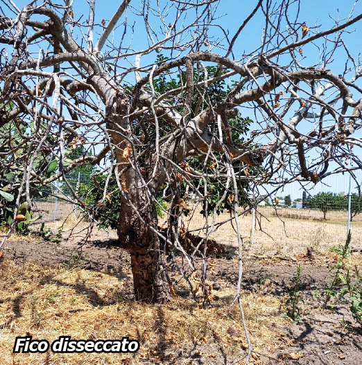 responsabile - dice Mello - sarebbe veramente un altro grave problema per il nostro territorio". In altre proprietà, dove insistono altri esemplari sparsi di fichi, molti alberi presentano la stessa sintomatologia ed alcuni sono, addirittura, del tutto secchi. E scavando il colletto di quasi tutte le piante non sono state notate marcescenze con micelio fungino che possano far pensare al marciume radicale. "Percorrendo le stradine di campagna, sempre in agro di Guagnano - continua Mello - abbiamo notato sui cigli stradali diversi altri fichi sofferenti o secchi. Si può allora dire che sia già allarme per la moria dei fichi in quest'area. Tutto ciò è molto preoccupante ed è stato segnalato al Servizio fitopatologico provinciale, per approfondire lo studio da parte degli organi competenti".