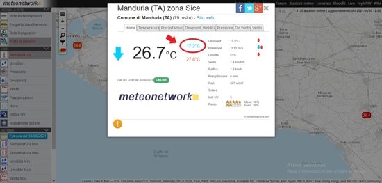Nella notte fra domenica e lunedì la temperatura minima è scesa sino a 17,2 gradi. Si è registrata dunque la minima più fredda dal 18 giugno.