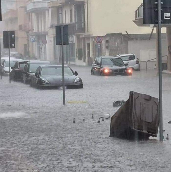 In pochi minuti a Nardò sono caduti poco meno di 70 millimetri di acqua, ovvero oltre sessanta litri per metro quadrato. L’acqua ha superato cinquanta centimetri d’altezza in via XXV Luglio e in viale De Gasperi. La zona stadio si è trasformata in lago con le persone costrette a uscire a nuoto dai finestrini delle auto. In via Roma, mai accaduto prima, è esplosa la fognatura lasciando sull’asfalto un cratere. Tante le auto rimaste in balìa del fiume d'acqua. Danni a centinaia di edifici, abitazioni ed esercizi commerciali allagati.