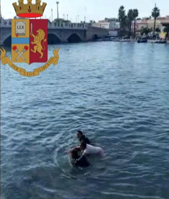 Considerata l’estrema pericolosità della situazione, visto che quello specchio d’acqua è abitualmente navigato da barche in transito verso il mar Piccolo, i poliziotti non hanno esitato a lanciarsi in mare per andare a salvare la donna.