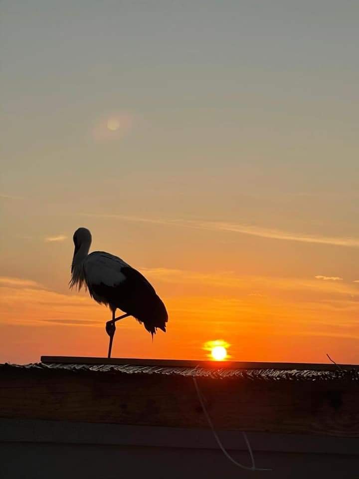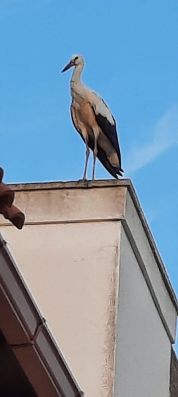 Un bellissimo esemplare di cicogna sul tetto di una casa di Specchiarica.