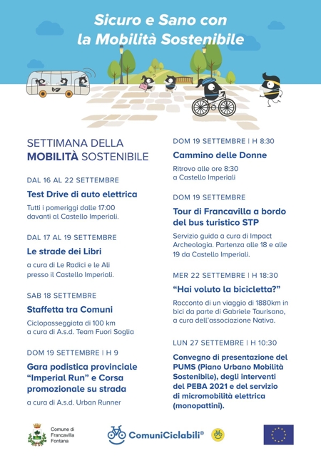 Per il quarto anno consecutivo l’Amministrazione Comunale di Francavilla Fontana ha aderito alla Settimana Europea della Mobilità Sostenibile (SEMS), l’iniziativa che da 20 anni a questa parte promuove l’utilizzo di sistemi di trasporto alternativi al mezzo privato e incoraggia l’adozione di stili di vita ecosostenibili.