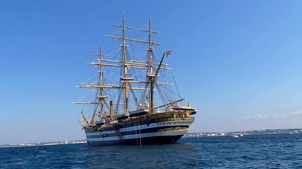 La “Vespucci” al largo di San Pietro in Bevagna.