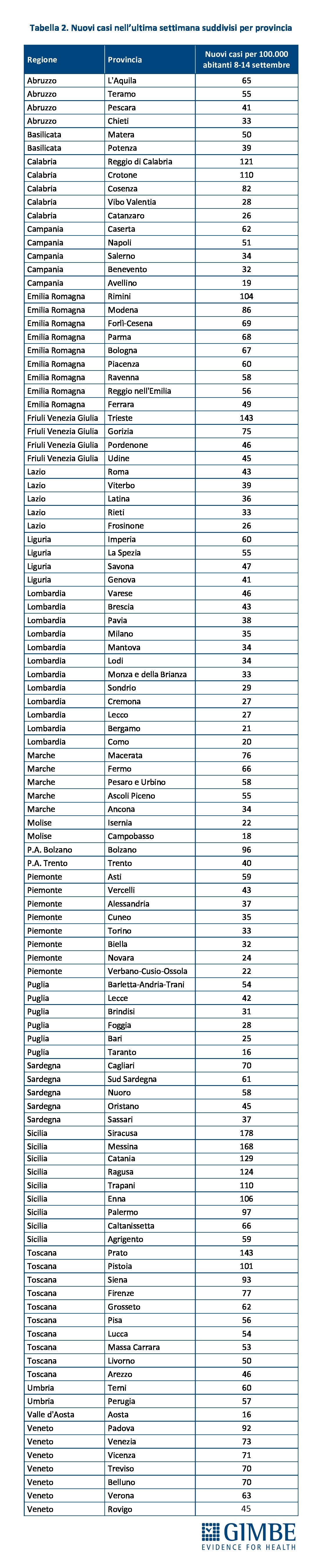 16 casi ogni 100mila abitanti su base settimanale: Taranto e Aosta