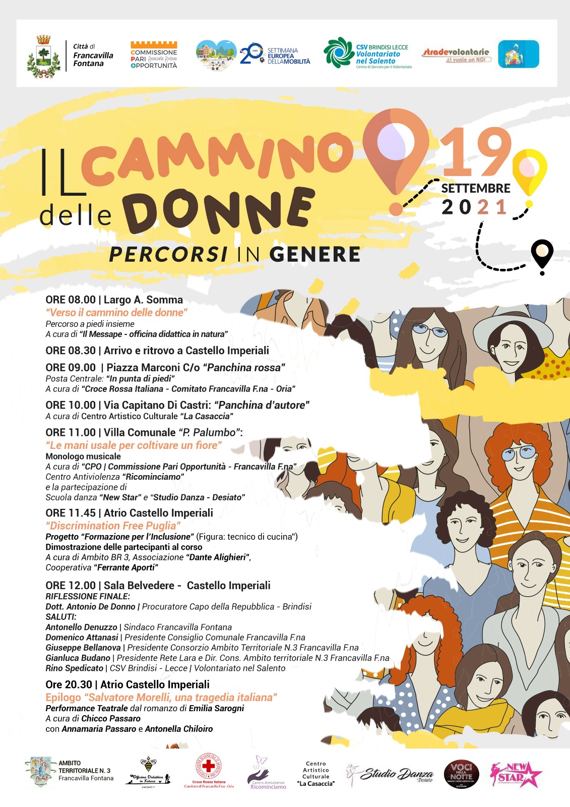 Istituzioni, associazioni, cittadine e cittadini si sono dati appuntamento domenica 19 settembre a Francavilla Fontana per intraprendere insieme il “Cammino delle donne – percorsi in genere” che vedrà, tra gli altri, l’intervento del Procuratore Capo della Repubblica presso il Tribunale di Brindisi Antonio De Donno.