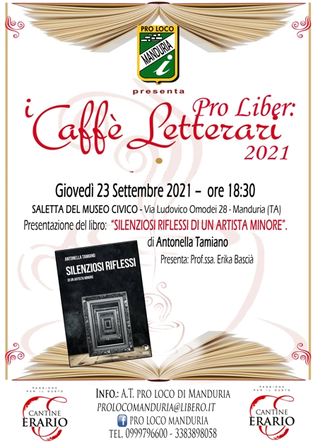 La rassegna “Pro Liber: i caffè letterari della Pro Loco di Manduria” prosegue il 23 settembre alle ore 18.30.