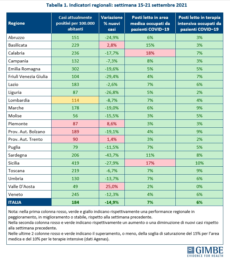 A livello nazionale il tasso di occupazione rimane basso (7% in area medica e 6% in area critica), seppur con notevoli differenze regionali: per l’area medica si collocano sopra la soglia del 15% Calabria (18%) e Sicilia (17%); per l’area critica nessuna regione supera la soglia del 10%.