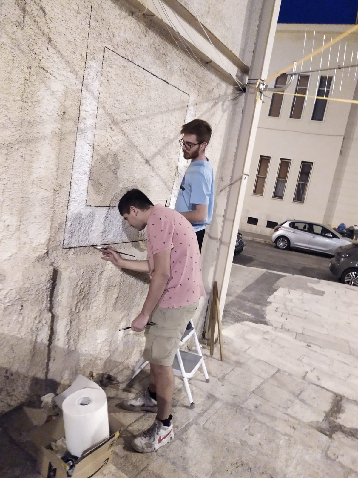 Anche la città di Taranto ed Europa Solidale, dunque, hanno messo a disposizione un luogo simbolico della comunità per invitare i più giovani a prendersene cura, a lavorare insieme per un progetto comune, a reinterpretare in chiave personale uno stencil creato per l’occasione dallo street artist LDB - Lorenzo di Bari. Il disegno, realizzato dal giovane urban artist pistoiese, raffigura un adulto che allaccia le scarpe a un bambino, il quale, con lo zaino sulle spalle, fissa lo spettatore con l’espressione di chi sta partendo per un viaggio e guarda al futuro carico di aspettative.