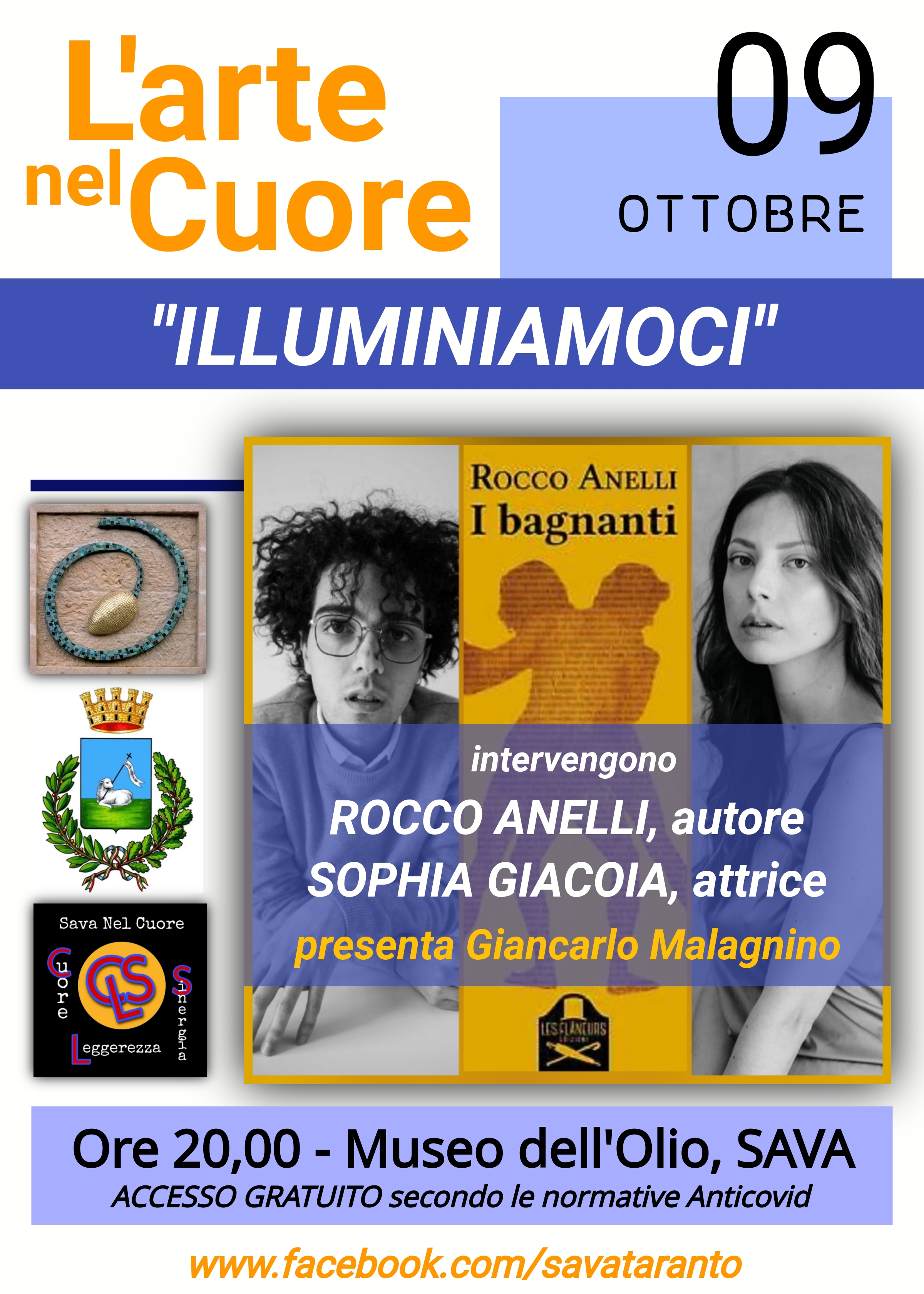 E’ uno dei passaggi del libro “I bagnanti” di Rocco Anelli, che sarà presentato sabato sera, alle 20, presso il Museo dell’Olio di Sava. L’evento, patrocinato dal Comune di Sava, rientra nella rassegna “Illuminiamoci – L’Arte nel cuore” dell’associazione che ha promosso l’iniziativa, ovvero “!Sava nel Cuore”.