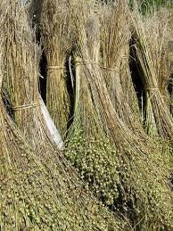 In foto: la zona del ‘cautisciatoio’ in contrada Marchese, nei pressi della sorgente del fiume Borraco, qualche anno fa (foto di D. Nardone); pianta del lino in fiore e covoni essiccati (fonte Pinterest).