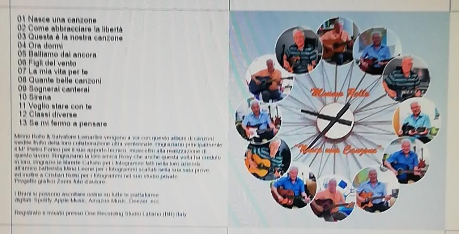 Nei giorni scorsi Mimmo Rollo ha inciso un altro album, che ha voluto intitolare “Nasce una canzone”. Contiene 13 brani (intitolati “Nasce una canzone”, “Come abbracciare la libertà”, “Questa è la nostra canzone”, “Ora dormi”, “Balliamo dai ancora”, “Figli del vento”, “La mia vita per te”, “Quante belle canzoni”, “Sognerai canterai”, “Sirena”, “Voglio stare con te”, “Classi diverse”, “Se mi fermo a pensare”), che sono frutto della proficua ultraventennale collaborazione di Mimmo Rollo con Salvatore Lomartire, che hanno scritto, congiuntamente, testi e musiche.
