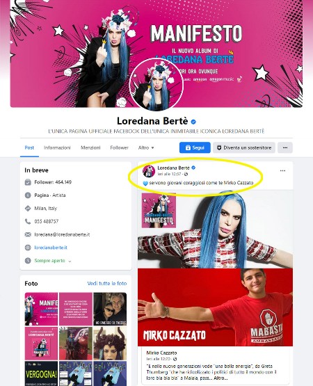 Il giovane studente leccese, dopo essersi ripreso dallo choc, ha immediatamente ringraziato la grande artista sui social e, pochi secondi dopo, la mitica Loredana ha condiviso il post di Mirko aggiungendo il commento: “Servono giovani coraggiosi come te Mirko!”