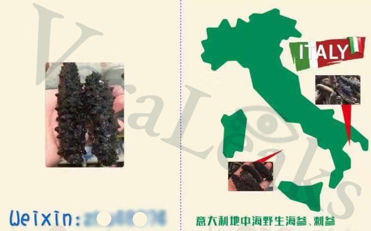 «VeraLeaks è venuta in possesso di alcune fotografie attestanti un vero e proprio mercato illegale che procaccia la clientela sulla nota app di messaggeria istantanea WeChat (Weixin), così come mostrato in una immagine. Nella chat on line viaggia la reperibilità dei fornitori che contatta i propri clienti con tanto di indicazione dell’username da contattare per gli acquisti. Verso il mercato cinese viaggiano oloturie e cavallucci marini che vengono pescati nel mar Piccolo e nel mar Grande di Taranto provocando, così, un grave danno ambientale al nostro ecosistema marino. Un vero e proprio ecoreato. Nelle fotografie è possibile notare l’accuratezza nella presentazione del prodotto che viene mostrato in eleganti cadeaux dove sono ben indicate provenienza geografica per attestarne qualità e prestigio così come avviene in una una vera e propria filiera certificata. Negli ideogrammi cinesi, ad esempio, oltre ai nomi dei prodotti, si legge la parola “Italia, Mediterraneo”.
