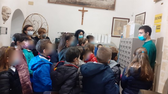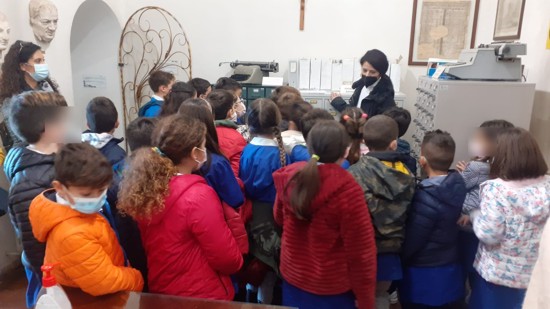 Dopo l’accoglienza nella sala centrale, il racconto delle vicende della Gattiana: la sua nascita, avvenuta alla fine del XIX secolo, grazie all’amore per i libri e per la propria città di due personaggi molto diversi fra loro, il senatore Nicola Schiavoni e il canonico don Gregorio Sergi. Nel corridoio centrale, l’attenzione dei ragazzi è stata rivolta alla campana del 1625 (fortunosamente scampata alla fusione durante la Seconda Guerra Mondiale, grazie all’interessamento di Michele Greco, direttore della “Marco Gatti” per quasi un trentennio), al busto del senatore Nicola Schiavoni e al ritratto del suo maestro di vita morale, a cui egli volle intitolare la biblioteca, cioè l’abate Marco Gatti.