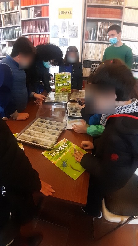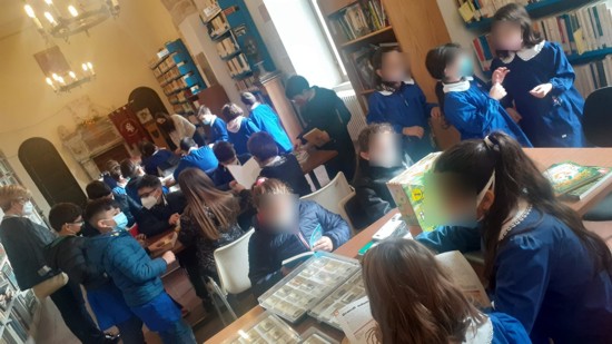 La visita è continuata nella sala lettura intitolata a Elio Dimitri, bibliofilo e studioso di storia patria. Qui, gli scaffali contenenti narrativa per ragazzi, classici ma anche una vasta selezione di testi recentissimi, graphic novel e di altro genere, sono stati letteralmente presi d’assalto dai piccoli lettori i quali, accomodandosi ai tavoli hanno sfogliato i volumi di loro gradimento. Grande entusiasmo e interesse ha suscitato inoltre una collezione privata di ’Insetti dal mondo’, un’opera editoriale del National Geographic (si tratta di esemplari di invertebrati, trattati con un innovativo sistema di conservazione, conservati in piccole teche), corredata da fascicoli con esauriente spiegazione, che la Gattiana sta ospitando per alcuni mesi.