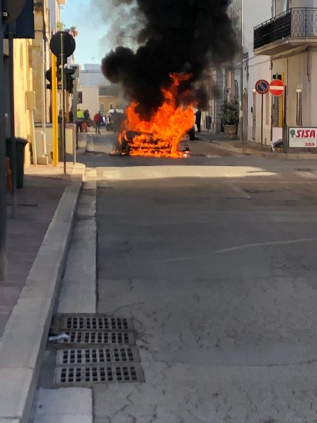 Un’auto è andata in fiamme nel centro di Avetrana, mentre transitava nei pressi del semaforo. Non si conoscono le cause dalle quali si è sprigionato l’incendio, che, per fortuna, ha provocato danni solo al mezzo e al vicino semaforo, ma non alle persone. Per spegnere l’incendio sono intervenuti i vigili del fuoco.