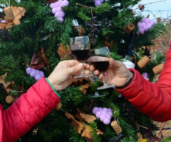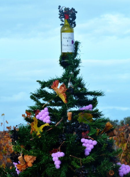 Dopo l’albero vestito a festa sulla spiaggia di San Pietro in Bevagna, anche un altro albero di Natale originale, omaggio ad un’altra ricchezza del nostro territorio: il Primitivo di Manduria