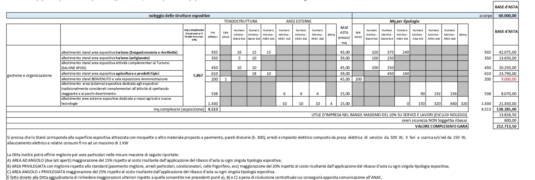 c) adeguata valorizzazione, nella procedura d’appalto, della coerenza delle soluzioni progettuali proposte dagli operatori economici con la vocazione caratterizzante l’evento fieristico e della presenza di elementi di valorizzazione della realtà locale, delle sue tradizioni e peculiarità culturali e produttive».