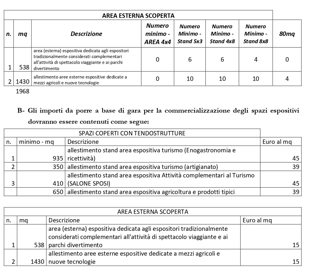 Prevista la riduzione dei costi a carico degli espositori rispetto agli anni precedenti, se necessario anche attraverso la riduzione degli spazi a disposizione dell’Amministrazione per convegni e manifestazioni