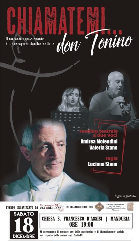 Un reading teatrale a due voci per rivivere la vita di don Tonino attraverso un viaggio potente, sconcertante ma meravigliosamente vero.