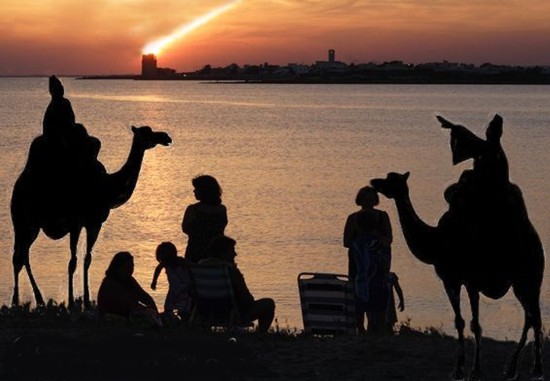 Nello scatto si intravede la torre costiera di Torre Colimena e un raggio di sole assomiglia alla scia della stella cometa