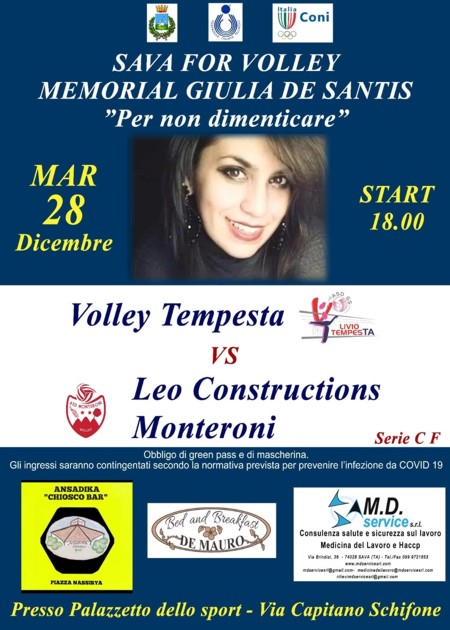 Su iniziativa della società Sava for Volley era stato promosso l’incontro fra Volley Tempesta Taranto e la Leo Constructions Monteroni, in programma alle 18 di oggi al palasport.