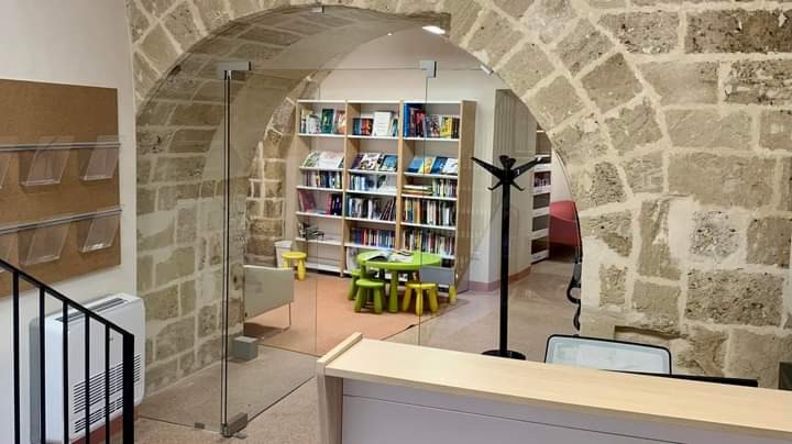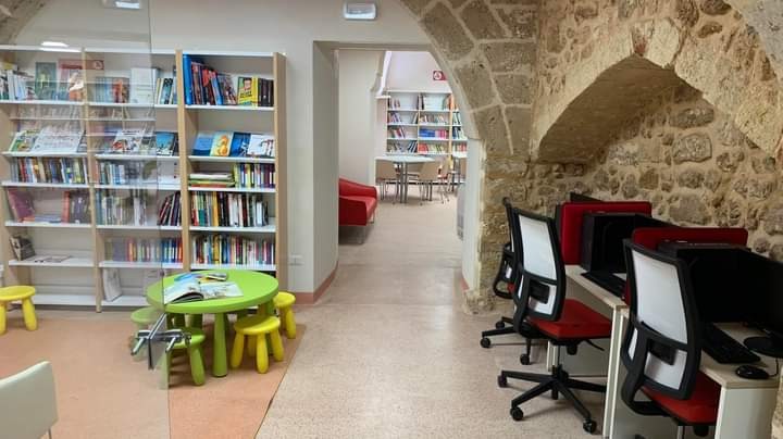 «Dopo due anni dalla vittoria del finanziamento regionale riservato alle Community Library, con ben 890.000 euro di lavori siamo riusciti a risanare l’intero piano terra (precedentemente inesistente) e il piano superiore mediante la posa in opera di un pavimento in coccio pesto, la realizzazione di bagni per diversamente abili, lo svellimento dell’intero intonaco esistente delle murature e delle volte portando il paramento delle stesse a faccia a vista, completando il tutto con adeguati impianti tecnologici (fogna, acqua, riscaldamento e di raffrescamento, impianto di estrazione meccanica dell’aria), mobili e dotazioni informatiche, libri, infissi interni ed esterni» scrive il sindaco Alfredo Longo in un post. «Siamo riusciti altresì a rimettere a nuovo l‘intero involucro esterno mediante un intervento di pulitura. La fase ha riguardato la pulitura di ogni singolo concio con idrolavaggio al cloro, spazzolatura, ripristino dei giunti, senza modificare in alcun modo la cromatura originaria del paramento. La copertura, inizialmente priva di protezione dagli agenti atmosferici, è stata anch’essa interessata da lavori con la posa di un pacchetto impermeabile e basole di pietra.