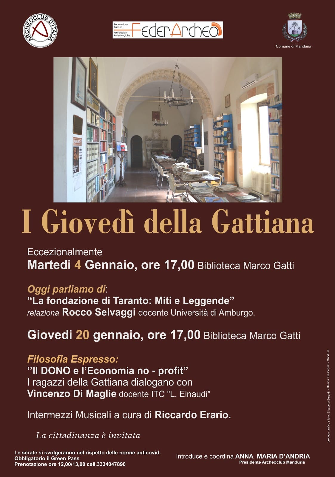 Riprendono con il nuovo anno “I Giovedì della Gattiana”, l’ appuntamento quindicinale in biblioteca, sospesi per il periodo natalizio. Eccezionalmente il primo incontro sarà martedì 4 gennaio, poiché il 6, festivo, la biblioteca è chiusa ed il relatore deve rientrare in sede.