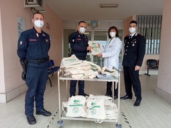 Sono stati consegnati gadgets come quaderni, zainetti in tela, carte da gioco, per regalare momenti di gioia ed alleviare le difficoltà dei bambini, nonché materiale divulgativo riguardante la conoscenza dell’ambiente e della biodiversità all’interno delle Riserve Naturali Statali gestite dal Reparto Carabinieri Biodiversità di Martina Franca, per consentire ai bambini anche un “contatto” virtuale con la natura: habitat eccezionali dove sopravvivono specie animali e vegetali di rara bellezza