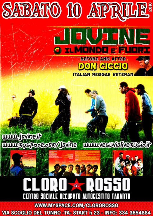 "Il Mondo e' fuori" , che verrà presentato proprio durante il concerto al Cloro Rosso, e' il nuovo lavoro discografico di Jovine: quarto album in studio della Band napoletana che si amplia sempre piu', costruendo un lavoro in cui la collaborazione tra gli artisti italiani dell'underground e' stata fondamentale.Il disco nasce dopo oltre 10 anni di attivita' live in tutta la penisola e dopo la realizzazione di 4 album in studio.