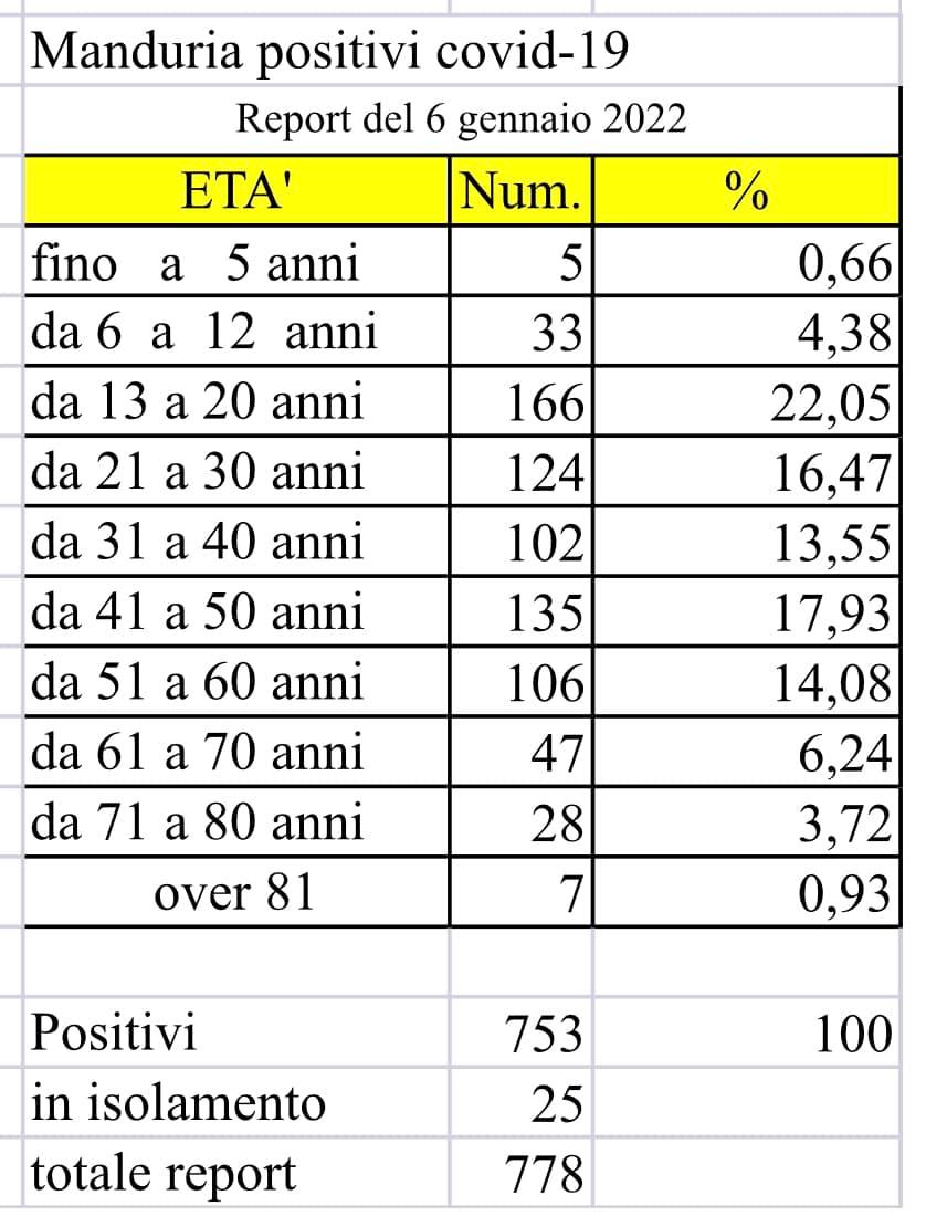 A distanza di 5 giorni (oggi siamo all’11 di gennaio) siamo convinti che il totale degli attualmente positivi sia molto vicino alle 1.000 unità. Ma a Manduria nessun provvedimento viene adottato per cercare di arginare il contagio… Ad Avetrana l'Amministrazione ha sanificato tutti gli ambienti scolastici prima dell'avvio delle lezioni. Le Amministrazioni di Avetrana e Sava hanno deciso di non far riprendere la mensa scolastica dopo le vacanze natalizie...