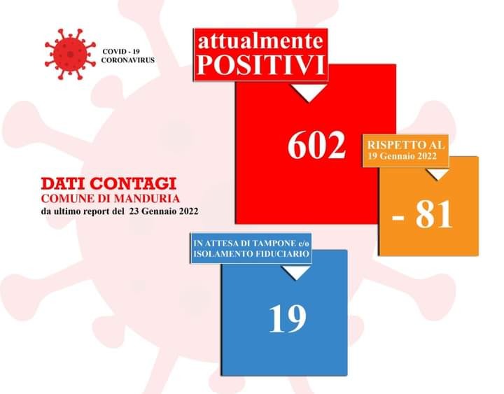 Il report, poi, segnala anche 19 manduriani in isolamento fiduciario.
