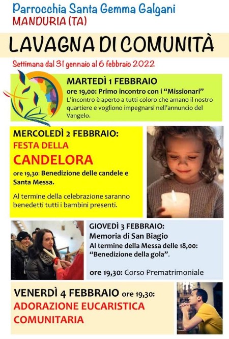 Dal primo incontro con i “missionari” alla festa della Candelora, dalla Memoria di San Biagio all’adorazione eucaristica comunitaria