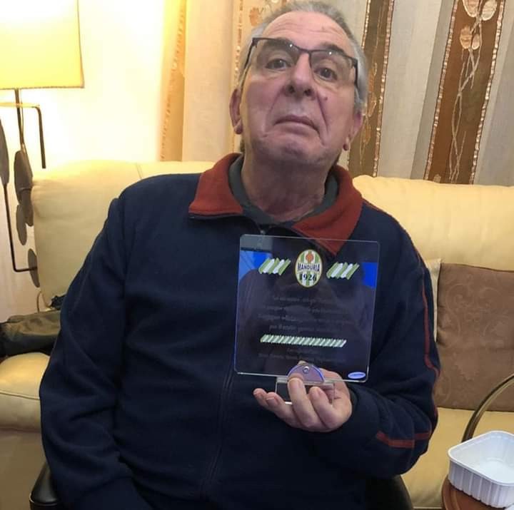 Di questa sorpresa (alla quale hanno partecipato anche il tifoso e preparatore atletico Fabrizio Mastrovito e il sindaco Gregorio Pecoraro) vi proponiamo le due foto pubblicate sulla propria pagina Fb dal figlio di Vincenzo, Alessandro Stranieri.