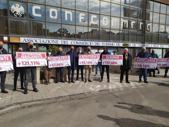 Gli aumenti previsti per il 2022 incideranno in particolare su bar (100%), ristoranti (73%), su negozi alimentari (62) e alberghi (61%).