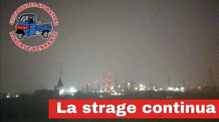 «Questo è lo scenario che si presente in questo momento per chi arriva a Taranto da Statte» scrivono in un poso gli attivisti del comitato “Cittadini e Lavoratori Liberi e Pensanti”.