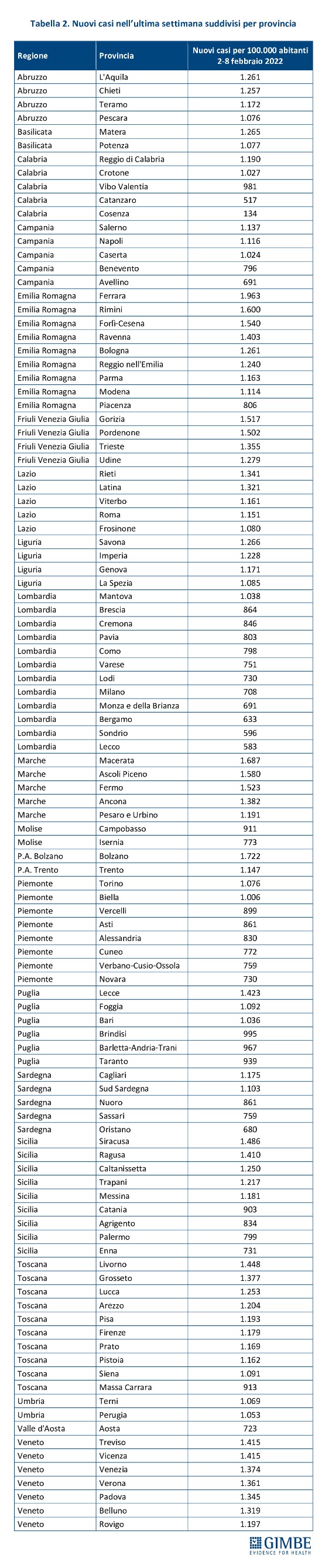 Sono invece 70 le province italiane con un’incidenza superiore ai 1.000 casi per 100.000 abitanti, distribuite in tutte le regioni ad eccezione di Molise e Valle d’Aosta.