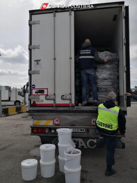 Il prodotto è stato intercettato sulla banchina di Costa Morena, durante le operazioni di sbarco da un traghetto proveniente dal porto greco di Igoumenitsa. All'interno di un automezzo, nascosto tra altri prodotti ittici regolarmente trasportati, è stata scoperta una pedana contenente i frutti di mare. Il conducente del mezzo non è stato in grado di fornire alcuna indicazione circa la provenienza del prodotto ittico, né una valida documentazione sanitaria e commerciale che ne comprovasse la tracciabilità. A questo punto, è scattato il sequestro. Al trasgressore, di nazionalità greca, e alla ditta esportatrice con sede legale sempre in Grecia, è stata elevata una sanzione amministrativa di 4.500 euro, mentre il prodotto ittico, ancora vivo, è stato rigettato in mare.