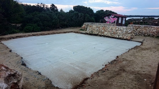 Sul sito interessato dalla platea era ancora presente un residuo dell’ex strada litoranea, per cui è stato necessario procedere alla bonifica dell’asfalto senza interessare il sentiero interno della Salina e gli habitat limitrofi. Sarà sistemato terreno ecocompatibile e specie erbacee di copertura per la mitigazione dell’impatto.