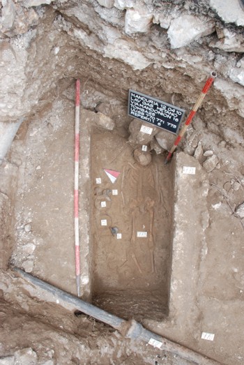 una deposizione funeraria. Dalla grandezza del bacino, che si è ben conservato, si è dedotto che dovrebbe trattarsi di una donna. Inoltre, dalle dimensioni dei denti si è arrivati alla conclusione che la donna è morta in età adulta.