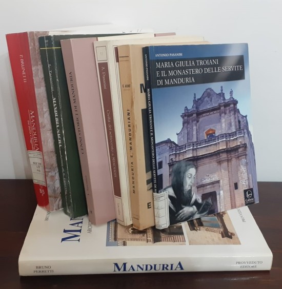 Bibliografia sull’argomento disponibile in biblioteca: Antonio Pasanisi, ‘Maria Giulia Troiani e il monastero delle Servite di Manduria’; Antonio Pasanisi, ‘Civiltà del Settecento a Manduria’; Pietro Brunetti, ‘Manduria tra storia e leggenda’; Leonardo Tarentini ‘Cenni storici di Manduria’; Leonardo Tarentini, ‘Manduria sacra’; Giambattista Arnò, ‘Manduria e manduriani’.