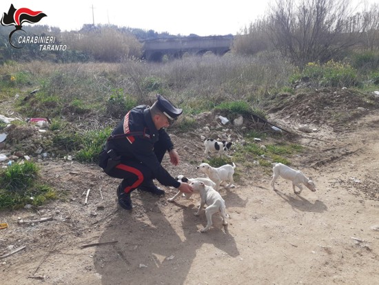 I Carabinieri della Stazione di Palagianello, nel corso di una normale attività di controllo del territorio in area rurale, hanno notato cinque cuccioli meticci, in evidente stato di malnutrizione, che rovistavano tra alcuni rifiuti abbandonati sul ciglio della strada alla ricerca di cibo.