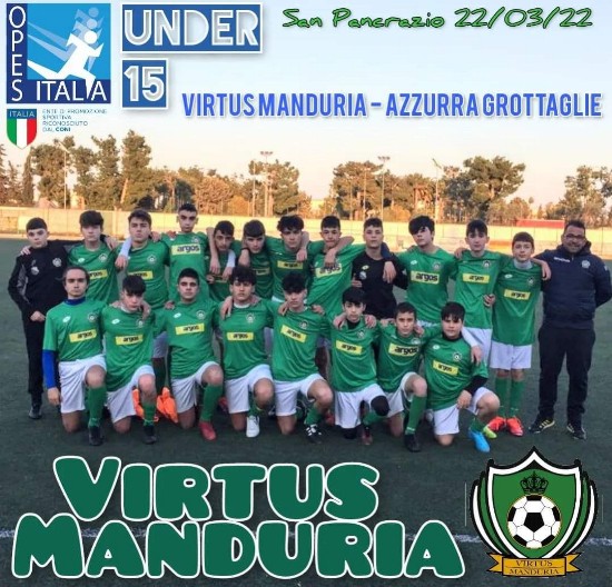 TORNEO OPES – La squadra under 15 sta partecipando anche al torneo Opes under 15. Nello scorso fine settimana la Virtus Manduria ha affrontato e battuto l’Azzurra Grottaglie con il punteggio di 9-0. Ottima la prova sia dell’undici di partenza, sia di tutti i ragazzi che sono stati impiegati a partita in corso.