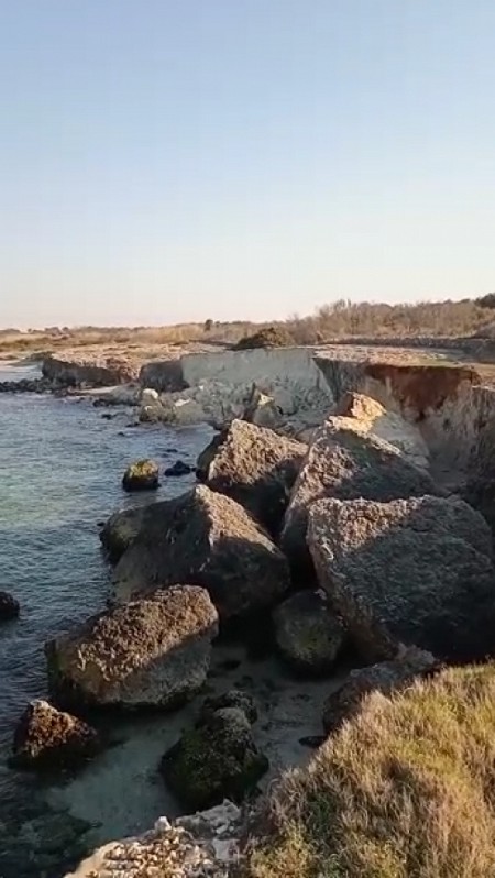 Un’altra fetta di falesia è rovinata sulla battigia come neve al sole, quasi a ridosso della Sp 366 e la spiaggia
