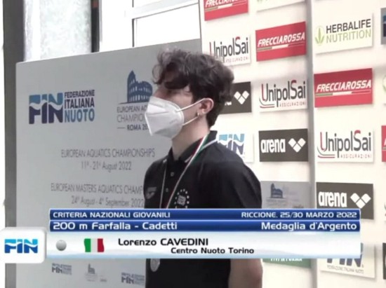 Ottimo esordio per Lorenzo Cavedini nei Criteria Nazionali Giovanili in corso di svolgimento a Riccione. L’atleta, tesserato per il Centro Nuoto Torino e classe 2003, ha conquistato la medaglia d’argento nella gara dei 200 farfalla per la categoria Cadetti (nati nel 2002-2003).