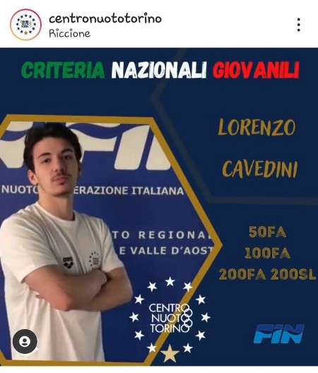 E’ questo il consuntivo dei Criteria Nazionali Giovanili di Riccione per l’atleta savese Lorenzo Cavedini, tesserato per il Centro Nuoto Torino. Lorenzo è salito sui blocchi di partenza di quattro gare differenti (50, 100 e 200 farfalla, 200 stile libero), ottenendo una medaglia d’argento e migliorando, in due gare, il proprio personale.
