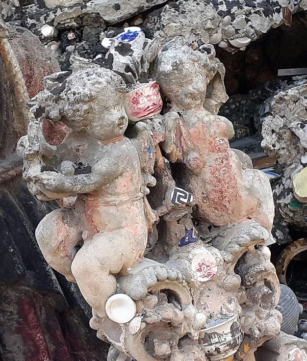 Commovente la dedizione del Greco verso l’opera da lui realizzata. Così il Tarentini: «E chi non ricorda quel vecchione piegato in mezzo al Calvario a rattoppare il suo mosaico o fra un mucchio di conchiglie, di cristalli di porcellana intento a scegliere, separare, ordinare e tutto assorto nel suo lavoro con la gioia di un avaro in mezzo a un gran tesoro! (…) Morì raccomandando il suo Calvario» (p. 243).