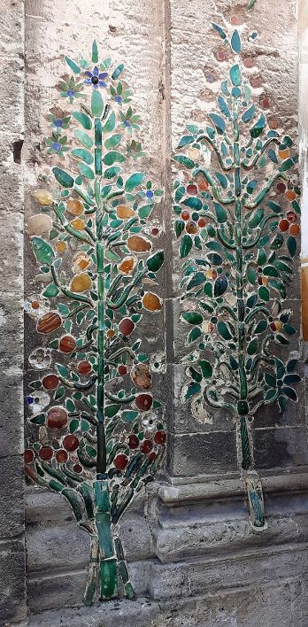 Egli questuò cocci di bottiglie, di piatti, di specchi, di boccali e di cristalli, con cui decorò le croci, componendo una sorta di mosaico, al quale la policromia dei materiali utilizzati conferisce, da sempre, un effetto sorprendente e unico. Il maestro Greco, ricostruendo accuratamente quanto riportato nei vangeli, addossò alle
