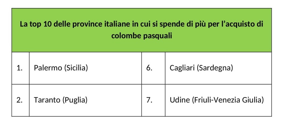 Guardando alle specificità locali e analizzando i dati di acquisto delle singole province del Bel Paese è emerso un curioso primato: infatti, va a Taranto lo scettro di città più “golosa” d’Italia, al primo posto per la spesadi uova di cioccolato e al secondo quando si tratta di mettere nel carrello colombe pasquali.