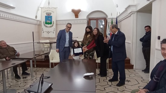 Ieri, presso la sala consiliare del Comune di Sava, il sindaco Dario Iaia, il presidente del Consiglio Pasquale Calasso e l’assessore allo Sport Milena Bisci hanno consegnato, a nome dell’Amministrazione comunale, un riconoscimento per meriti sportivi ai due atleti savesi che si sono distinti a livello nazionale nei campionati di nuoto “Criteria Nazionali Giovanili Riccione 2022”: Alice Di Maggio e Lorenzo Cavedini.